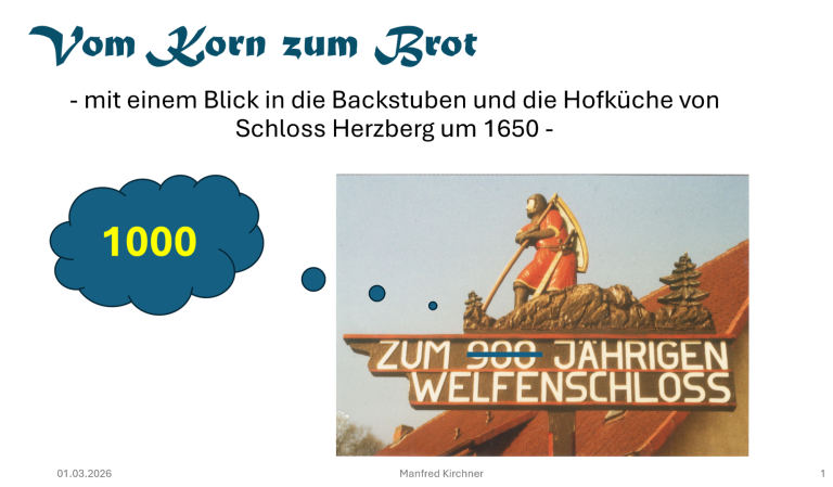 Ich habe mich sehr über den Besuch von ca. 60 Bürgern aus Herzberg und der Region zu meinem Vortrag "Vom Korn zum Brot" gefreut. Mit einem solchen Interesse habe ich nicht gerechnet. Sonst hätte ich noch zwei weitere Brote gebacken. Wer noch eine Brot-Kostprobe haben möchte, bitte kurze Rückmeldung an mich. Da ich den Vortrag ehrenamtlich gehalten habe, geht die Spende an das Museum im Schloss. Schließlich gab es ja noch Wasser und Butter aus der Museumskasse. Herzlichen Dank auch an das Museumsteam für die Unterstützung des Vortrags!